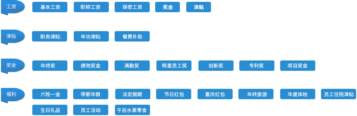 福利=六險一金+帶薪年假+法定假期+節日紅包+喜慶紅包+年終旅游+年度體檢+員工住院津貼+生日禮品+員工活動+午后水果零食
